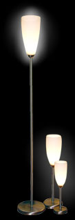 Ideal zur harmonischen Ausleuchtung einer Wohn- oder Sitzgruppe. Höhe ca. 165 cm. Der Sockel mit einem Durchmesser von ca. 26 cm wurde mit einem Gewicht ausgestattet, welches für absolut sicheren Stand sorgt.